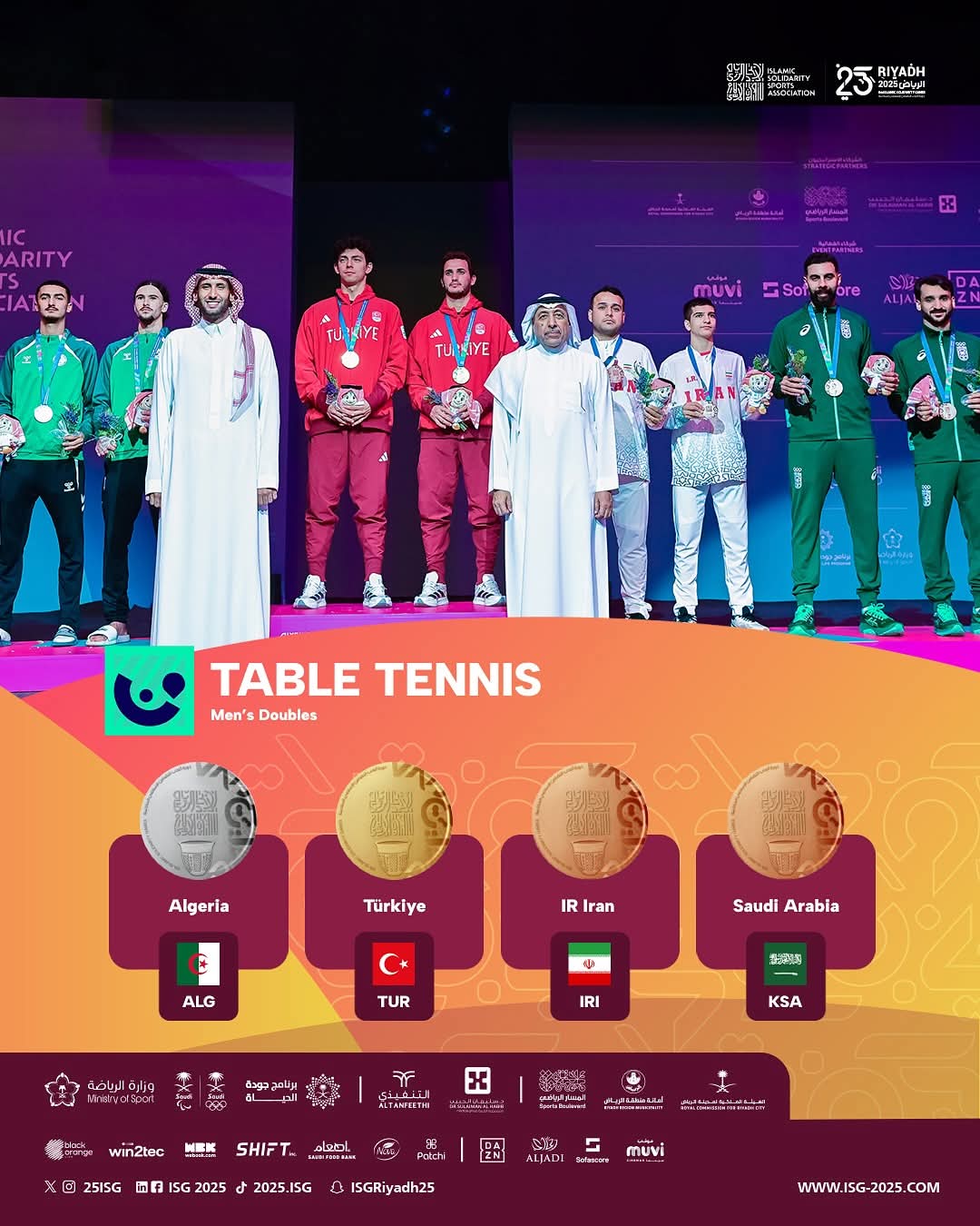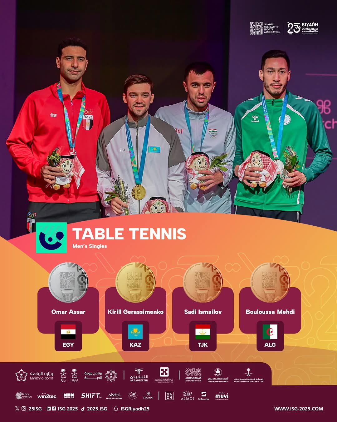 في حصة رياضية خاصة بمشاركة المنتخب الوطني رجال في الألعاب التضامن الإسلامي التي أجريت بالنسبة لكرة الطاولة من 08الى 13 نوفمبر 2025 أين النتائج كانت جيدة